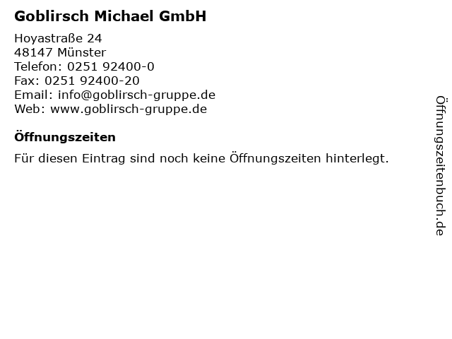 | Öffnungszeiten Goblirsch Michael GmbH in Münster anzeigen | |