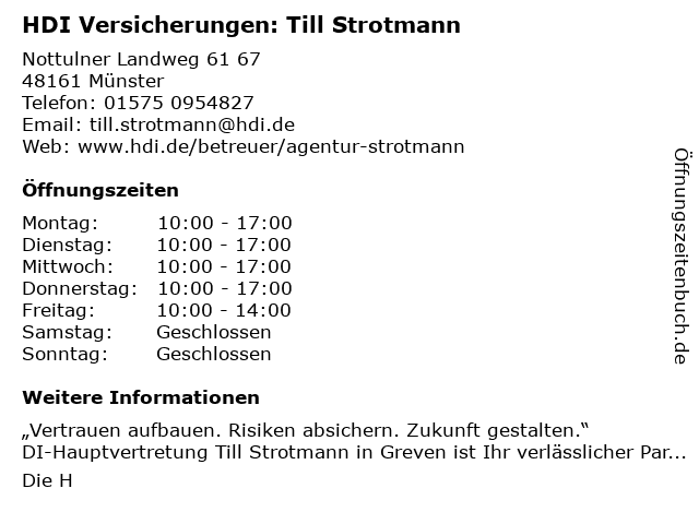 Branchen & Suchbegriffe zu HDI Versicherungen: Till Strotmann:altersvorsorge, autoversicherung, gebäude- und hausratsversicherung, gewerbeversicherung, hdi, immobilienversicherungsagentur, lebensversicherung, pflegeversicherung, strotmann, tierversicherung, till, unternehmensversicherung, versicherungen |