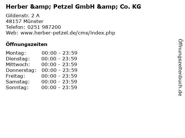 | Öffnungszeiten Herber & Petzel GmbH & Co. KG in Münster anzeigen | |
