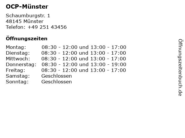 | Öffnungszeiten OCP-Münster in Münster anzeigen | |
