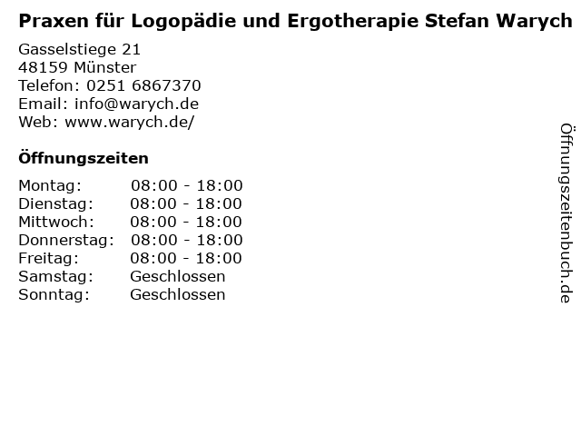 Branchen & Suchbegriffe zu Praxen für Logopädie und Ergotherapie Stefan Warych:ergotherapie, logopädie, praxen, stefan, warych |