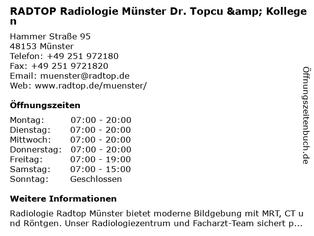 Branchen & Suchbegriffe zu RADTOP Radiologie Münster Dr. Topcu & Kollegen:dr., kollegen, radiologie, radtop, topcu |