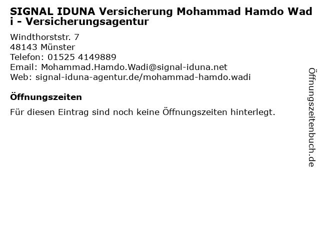 | SIGNAL IDUNA Versicherung Mohammad Hamdo Wadi - Versicherungsagentur anrufen | |