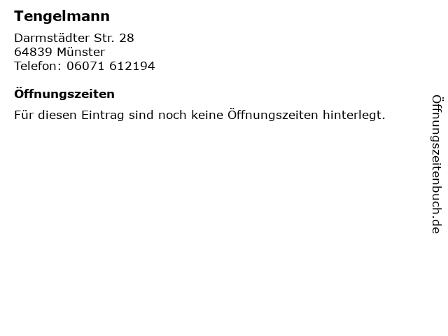 | Telefonnummer Tengelmann in Münster (06071 612194) anrufen | |