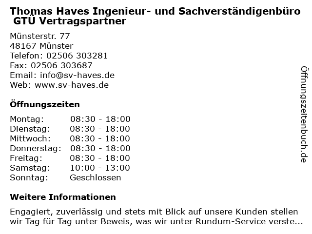 Branchen & Suchbegriffe zu Thomas Haves Ingenieur- und Sachverständigenbüro GTÜ Vertragspartner:gtü, haves, ingenieur, sachverständigenbüro, thomas, vertragspartner |