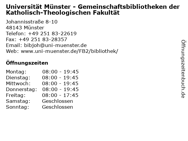 Branchen & Suchbegriffe zu Universität Münster - Gemeinschaftsbibliotheken der Katholisch-Theologischen Fakultät:bibliothek, buch, buchscanner, fakultät, gemeinschaftsbibliotheken, katholisch, literaturen, sprachen, theologischen, universität |