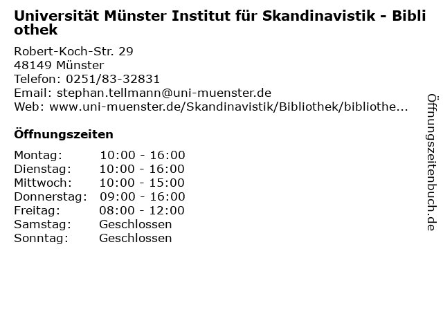 Branchen & Suchbegriffe zu Universität Münster Institut für Skandinavistik - Bibliothek:bibliothek, buch, buchscanner, institut, literaturen, skandinavistik, sprachen, universität |