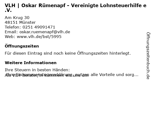| VLH | Oskar Rümenapf - Vereinigte Lohnsteuerhilfe e.V. anrufen | |