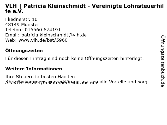 | VLH | Patricia Kleinschmidt - Vereinigte Lohnsteuerhilfe e.V. anrufen | |