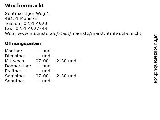 | Öffnungszeiten Wochenmarkt in Münster anzeigen | |