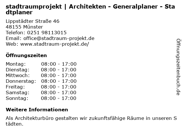 | Montag | 08:00-17:00 |