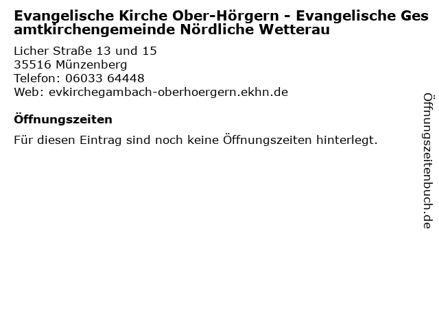 | Evangelische Kirche Ober-Hörgern - Evangelische Gesamtkirchengemeinde Nördliche Wetterau anrufen | |