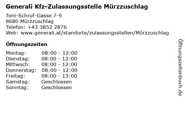 Branchen & Suchbegriffe zu Generali Kfz-Zulassungsstelle Mürzzuschlag:generali, kfz, mürzzuschlag, zulassungsstelle |