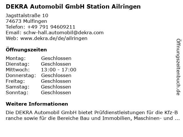 4 DEKRA Automobil GmbH Außenstelle Bad Mergentheim (Entfernung: 14,01 km) Wilhelm-Frank-Straße 80, 97980 Bad Mergentheim 6 |