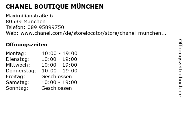 Öffnungszeiten CHANEL BOUTIQUE MÜNCHEN