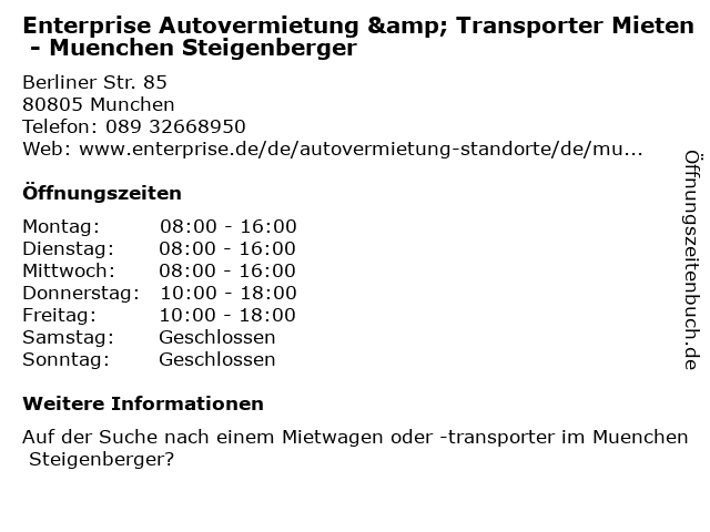 Branchen & Suchbegriffe zu Enterprise Autovermietung & Transporter Mieten - Muenchen Steigenberger:autovermietung, enterprise, mieten, muenchen, steigenberger, transporter |