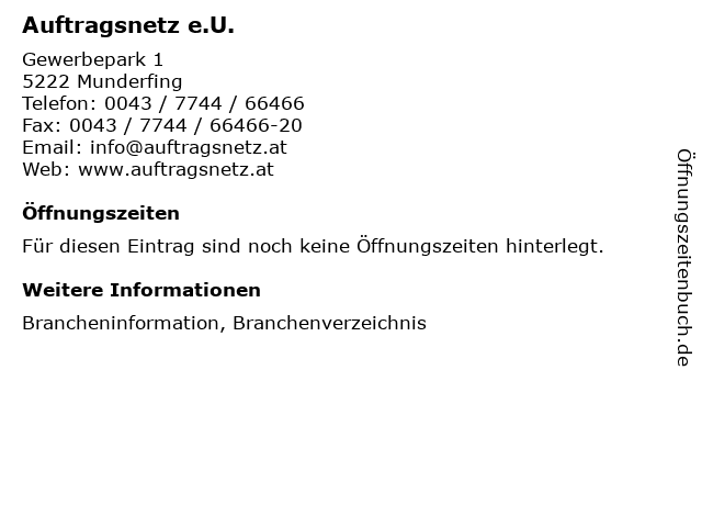 | Öffnungszeiten Auftragsnetz e.U. in Munderfing anzeigen | |