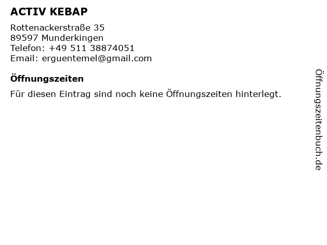 | Öffnungszeiten ACTIV KEBAP in Munderkingen anzeigen | |
