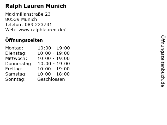 | Öffnungszeiten Ralph Lauren Munich in Munich anzeigen | |