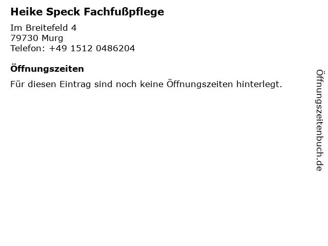 | Telefonnummer Heike Speck Fachfußpflege in Murg (+49 1512 0486204) anrufen | |
