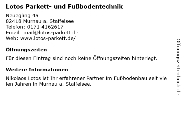 | Lotos Parkett- und Fußbodentechnik anrufen | |
