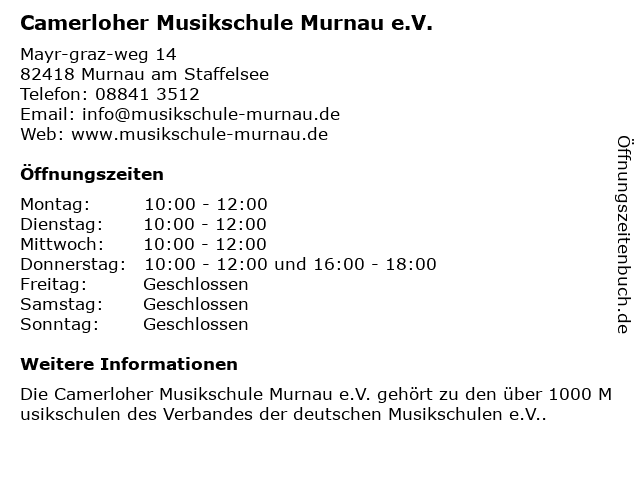 Branchen & Suchbegriffe zu Camerloher Musikschule Murnau e.V.:camerloher, e.v., murnau, musikschule |