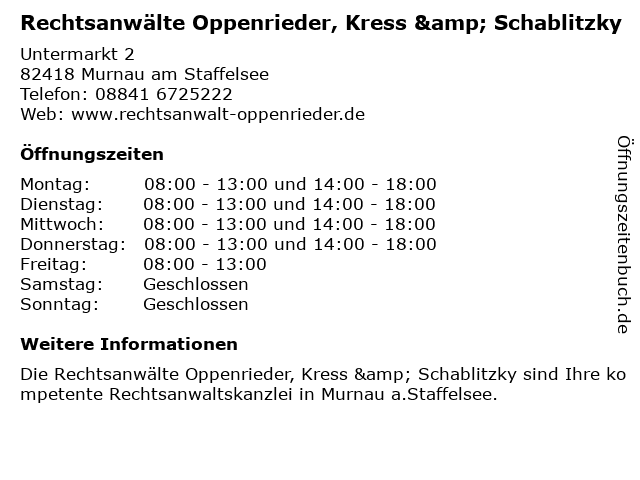 Branchen & Suchbegriffe zu Rechtsanwälte Oppenrieder, Kress & Schablitzky:kress, oppenrieder, rechtsanwälte, schablitzky |