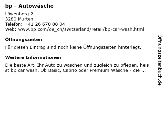 Öffnungszeiten bp - Autowäsche in Murten anzeigen | |