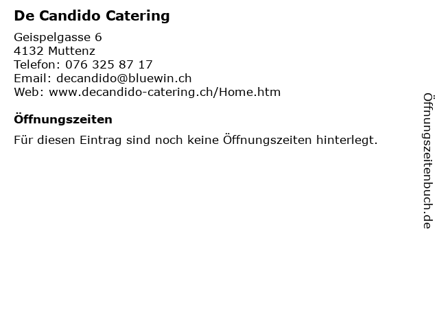 | Öffnungszeiten De Candido Catering in Muttenz anzeigen | |