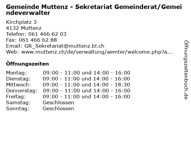 Branchen & Suchbegriffe zu Gemeinde Muttenz - Sekretariat Gemeinderat/Gemeindeverwalter:amt, behörde, gemeinde, gemeinderat/gemeindeverwalter, muttenz, sekretariat, verwaltung |