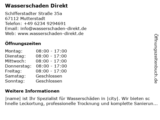 | Öffnungszeiten Wasserschaden Direkt in Mutterstadt anzeigen | |