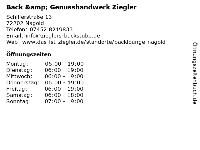 | Öffnungszeiten Back & Genusshandwerk Ziegler in Nagold anzeigen | |