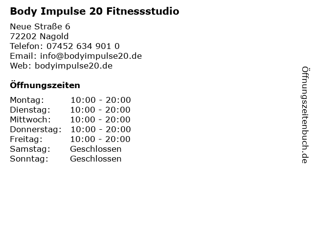 Branchen & Suchbegriffe zu Body Impulse 20 Fitnessstudio:20, body, ems training, fitnessstudio, gesundheit, impulse, sport, training |