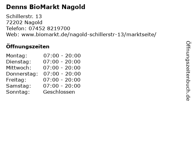 | Öffnungszeiten Denns BioMarkt Nagold in Nagold anzeigen | |