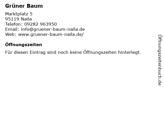 | Öffnungszeiten Grüner Baum in Naila anzeigen | |