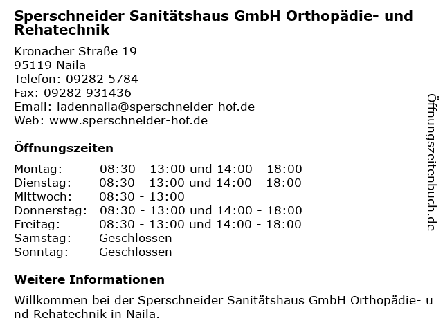 1 Sperschneider Sanitätshaus GmbH Orthopädie- und Rehatechnik (Entfernung: 14,95 km) Ludwigstraße 8, 95028 Hof 6 |
