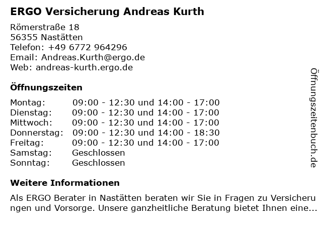 3 ERGO Versicherung Roland Beres (Entfernung: 4,45 km) Gartenfeldstraße 8, 56357 Holzhausen an der Haide 6 |