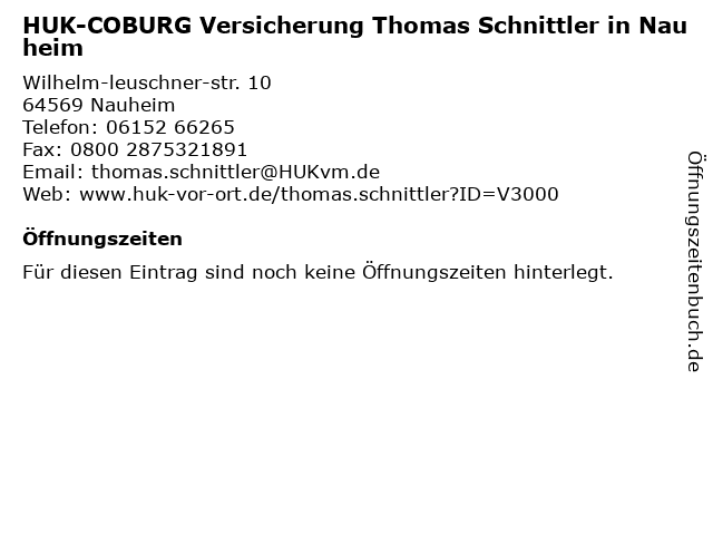 | HUK-COBURG Versicherung Thomas Schnittler in Nauheim anrufen | |