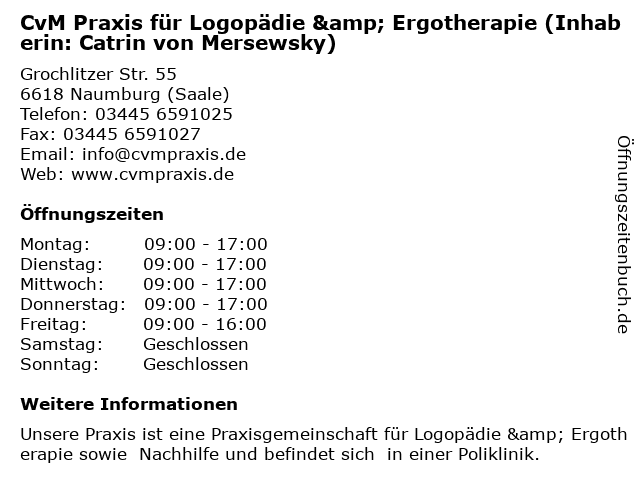 Branchen & Suchbegriffe zu CvM Praxis für Logopädie & Ergotherapie (Inhaberin: Catrin von Mersewsky):catrin, cvm, ergotherapie, inhaberin, logopädie, mersewsky, praxis, von |