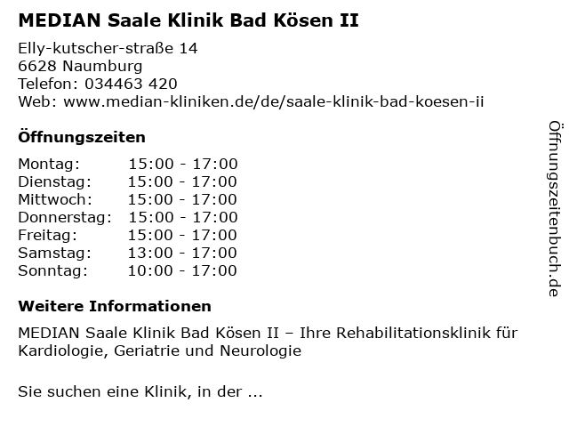 Branchen & Suchbegriffe zu MEDIAN Saale Klinik Bad Kösen II:bad, ii, klinik, kösen, median, saale |