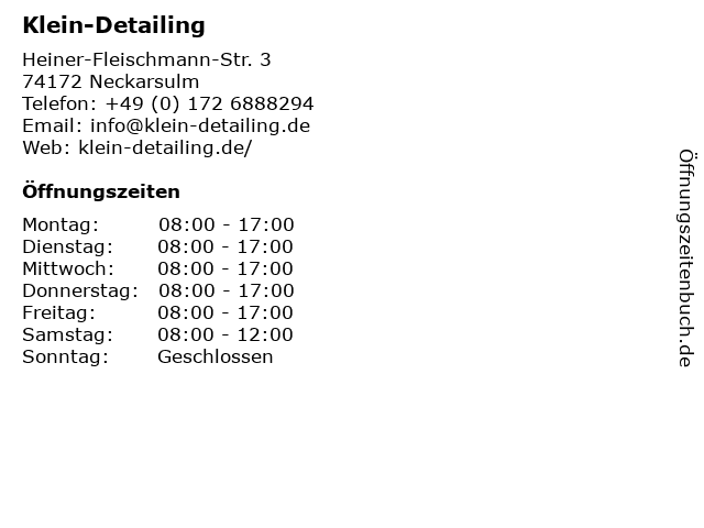 | Öffnungszeiten Klein-Detailing in Neckarsulm anzeigen | |