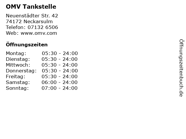 | Öffnungszeiten OMV Tankstelle in Neckarsulm anzeigen | |