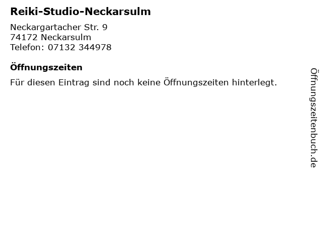 | Telefonnummer Reiki-Studio-Neckarsulm in Neckarsulm (07132 344978) anrufen | |