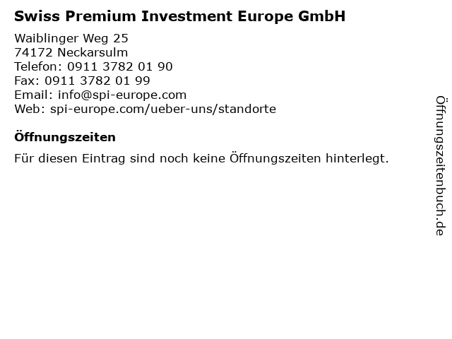 | Swiss Premium Investment Europe GmbH anrufen | |