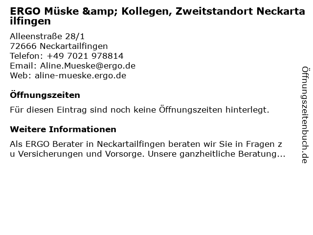 | ERGO Müske & Kollegen, Zweitstandort Neckartailfingen anrufen | |