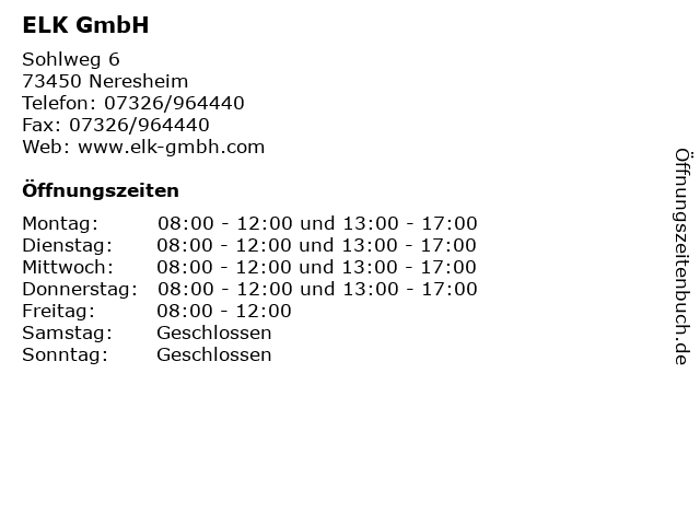 | Öffnungszeiten ELK GmbH in Neresheim anzeigen | |
