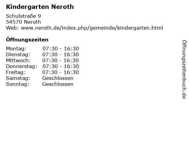 | Öffnungszeiten Kindergarten Neroth in Neroth anzeigen | |