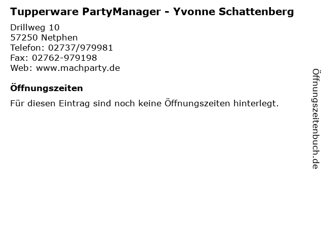 | Tupperware PartyManager - Yvonne Schattenberg anrufen | |