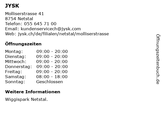 | Öffnungszeiten JYSK in Netstal anzeigen | |
