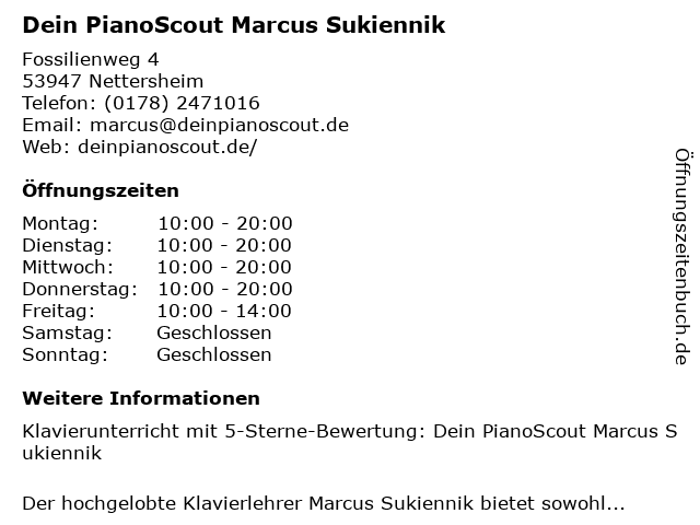 Branchen & Suchbegriffe zu Dein PianoScout Marcus Sukiennik:dein, keyboard-unterricht, klavierkurse, klavierlehrer, marcus, pianoscout, pianounterricht, sukiennik, unterricht |